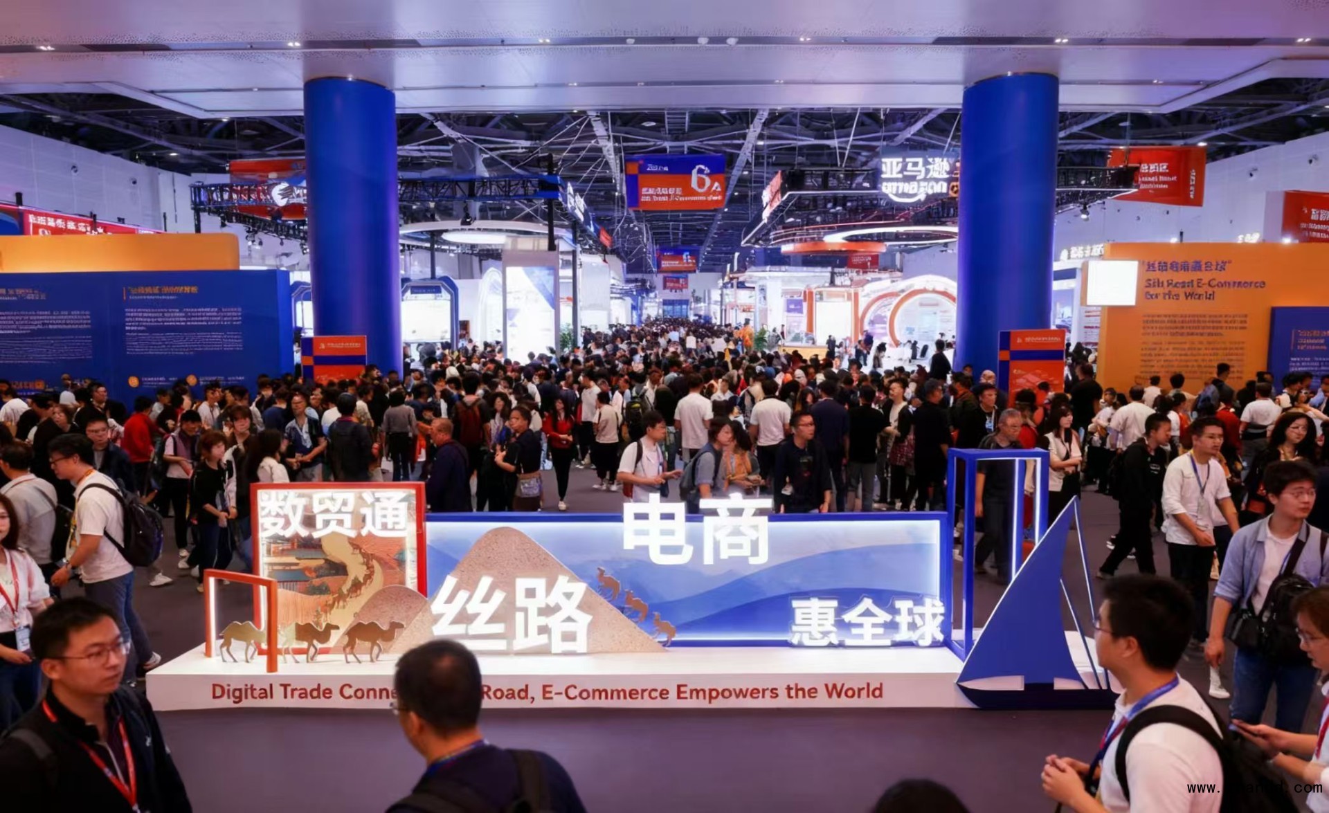 丝路电商展区主要聚焦数字订购贸易,分设平台、服务、品牌、金砖暨伙伴国丝路合作四个板块,重点展示“一带一路”沿线国家(地区)、金砖国家电子商务与人工智能深度融合的最新案例、成果与场景。